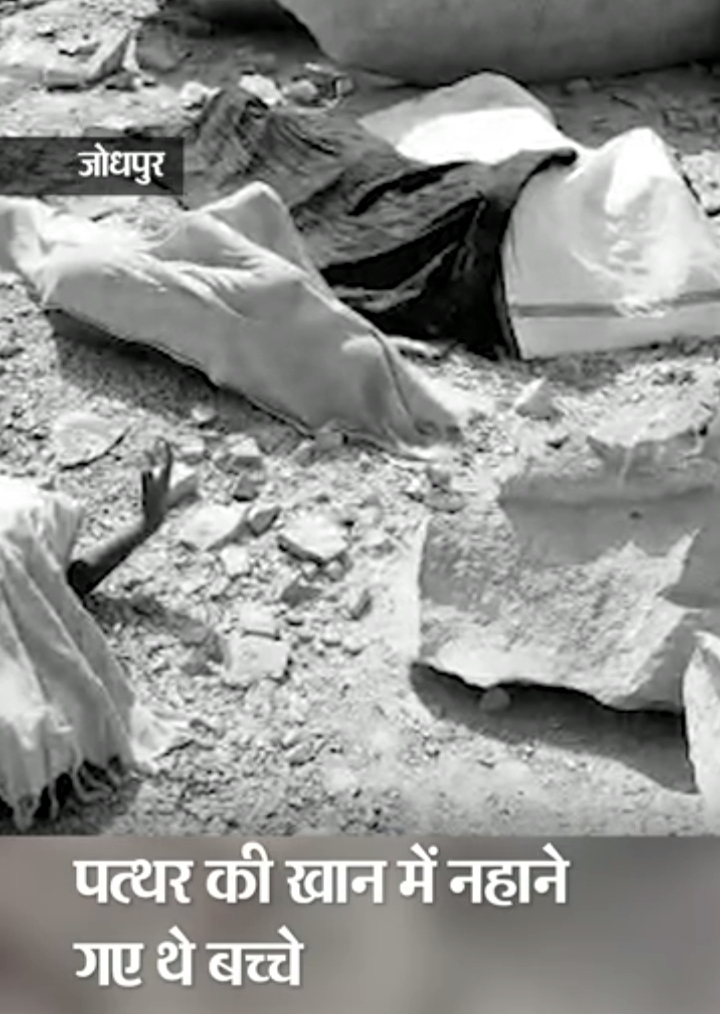 पत्थर की खान में डूबने से 4 बच्चों की मौत: 50 फीट गहरे गड्ढे में नहाने गए थे, 17 घंटे से लापता थे,पाक से आए परिवार के बच्चे नहाने गए थे