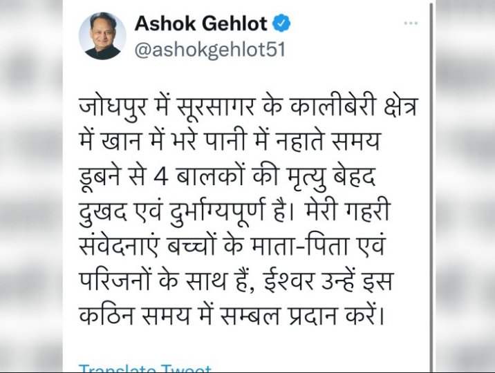 पुलिस और घरवाले बच्चों काे ढूंढ ही रहे थे कि किसी व्यक्ति ने कालीबेरी क्षेत्र में पत्थर की खान में भरे पानी के ऊपर एक बच्चे का शव देखा। आस-पास के लोग वहां पहुंचे। शव को बाहर निकाला तो उसकी पहचान रमेश के बेटे पूनमचंद के रूप में हुई। ऐसे में बच्चों के पानी में डूबने की आशंका में स्थानीय लोगों व गोताखोर की मदद से खान के पानी में तलाश शुरू की। करीब 3 घंटे की मशक्कत के बाद तीन अन्य बच्चों के शव भी बाहर निकाले। पुलिस ने बताया कि तीनों के शव गहराई में फंस गए थे। इस घटना के बाद सीएम ने भी ट्वीट किया।